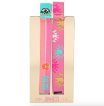 Paarse feest polsbandjes van Lisa en Lena.