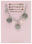 Deze meisjesarmband is opgebouwd uit mooie ovale ankerschakels. Aan de armband hangen drie bedeltjes met daarop een gestileerde zon. Daarnaast hangen er ook een aantal kralen aan het armbandje.