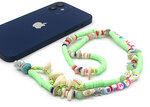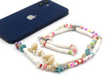 Telefoonkoord Ibiza style met kraaltjes en kwastjes, licht blauw, 80 cm.